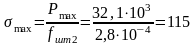 Приведенное напряжение в точке подвеса штанг составляет соответственно: