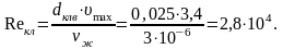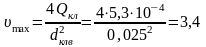 Максимальная скорость движения смеси в седле всасывающего клапана и число Рейнольдса: