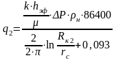 Величина отбора жидкости может быть также определена на основании гидродинамических расчетов (например, по формулам Маскета ), однако, при этом нужно проводить корректировку параметров пласта по данным опробования скважин или учитывать коэффициент воздействия ( ).
