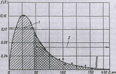 Рис.7 Распределение размеров пор в песчанике, k = 1д, m = 18,4% (по В.Н. Николаевскому и А.Ф. Богомоловой)