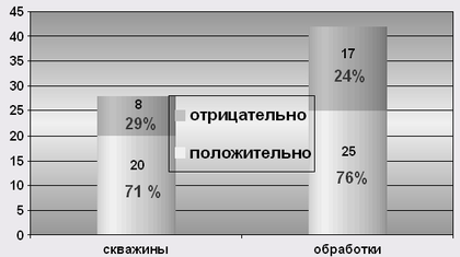 В процентном соотношении эффективность по скважинам достигает 71% , а по обработкам 76%. (график 3.)