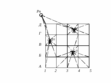 Затем измеряют длину А5–Д5, она должна отличаться от проектного значения не более чем на расстояние, содержащееся в 0,5 мм плана (масштаб построения плана 1: 500).