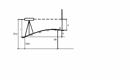 На этой стоянке вычисляем также горизонт инструмента Hги = Нpп + a и определяем высоту промежуточной точки Д: