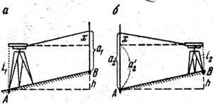 где а и в – отсчеты по рейкам (рис. 4).