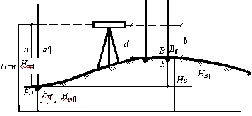 На этой стоянке вычисляем также горизонт инструмента Hги = Нpп + a и определяем высоту промежуточной точки Д: