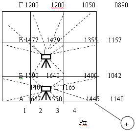 Затем измеряют длину А4–Г4, она должна отличаться от проектного значения не более чем на расстояние, содержащееся в 0,5 мм плана (масштаб построения плана 1: 500).
