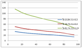 3. построение анализирующей зависимости «емкость водохранилища – гарантированная водоотдача» с использованием обобщенного метода расчета, то есть по обобщенным параметрам стока и водопотребления