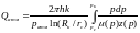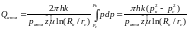 В третьей области R1< r < Rк, действует закон Дарси, течение можно считать плоскорадиальным. Обозначив давления на границах областей через р1 и р2, запишем для третьей области в соответствии с формулами нахождения дебита скважины для плоскорадиальной фильтрации:
