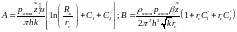 В первой области фильтрация происходит по двучленному закону, плоскорадиальное течение нарушается из-за перфорационных отверстий; несовершенство по характеру вскрытия учитывается коэффициентами С2 и C1:
