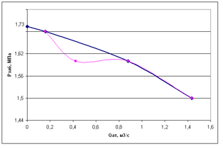 Из этого рисунка видно, что при исследованиях была допущена ошибка в измерении pзаб. и соответствующего ему дебита, а именно при pзаб =1,6 МПа дебит скважины, в данном случае, не равен Qат ≠0.416666667 м3/с.