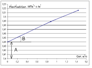 )/Qатм представляет собой прямые линии, для которых А- отрезок, отсекаемый на оси ординат, В- тангенс угла наклона прямой к оси абсцисс (рис. 5).