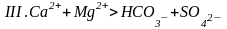 По этой классификации природные воды делятся на класс по преобладающим анионам, на группы по преобладающим катионам и на виды по соотношениям ионов. Название образуется так же, как и по формуле Курлова. Для определения преобладающего иона сравнивается их содержание в эквивалентной и процентной форме. Каждая группа делится на четыре типа, определяемые следующими неравенствами (мг-экв/л):