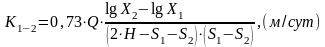 X1, X2- расстояния от центральной скважины, м