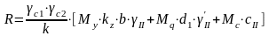 При розрахунку деформацій основи з використанням розрахункових схем, середній тиск під підошвою фундаменту не повинен перевищувати розрахункового опору грунта основи , , який визначається за формулою:
