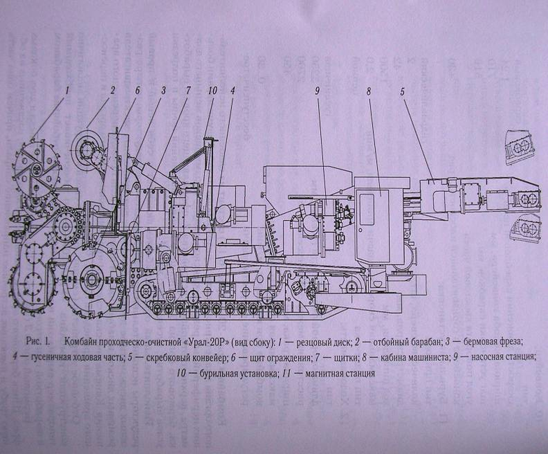 Комбайн «Урал-20Р» является одной из последних разработок ОАО «Копейский машиностроительный завод» и предназначен для применения на очистных работах в камерах и проходки выработок овально-арочной формы по пластам мощностью от 3,1 до 3,7 м при углах падения до ±12º, для калийных руд или каменной соли с сопротивлением резанию до Ар= 450 Н/мм (рис. 1).