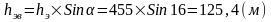 - наклонная высота зоны выветривания угля на выходах пластов под наносы, м;