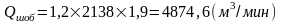 - расход воздуха для проветривания шахты, принимаемый максимальным по рассмотренным выше факторам, м3/мин;