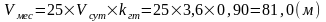 - объемная масса угля, т/м3;