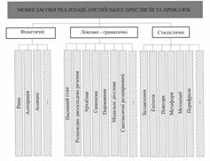 Проведений вище аналіз дозволив сформувати класифікацію мовних засобів реалізації англійських прислів’їв та приказок, наведену на рисунку 1.1.