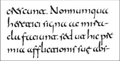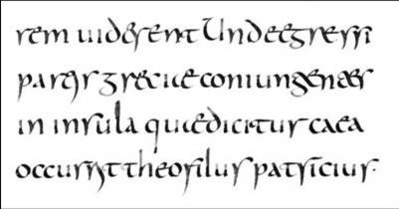 Шрифт обыденной письменности той эпохи, требовавшей более быстрого письма, получил название полуунциала. В нем значительно сильнее выражены выносные элементы.