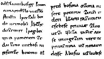 1. В западных областях, где проповедовали Константин и Мефодий – Великоморавское княжество, Паннония, – кириллица не известна. Все памятники письменности, найденные на этой территории, написаны глаголицей. В литературных памятниках, восходящих к Восточной Болгарии, а именно составленных в Преславской книжной школе царя Симеона (X в.), использовалась кириллица, следов глаголицы почти нет.