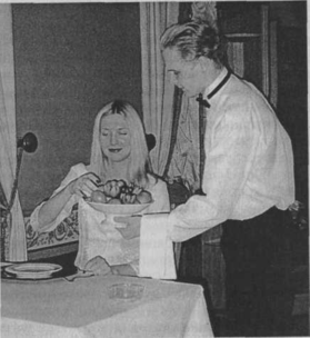 Всего необходимо 12 столов, которые следует установить буквой Т. Расчет сервантов производим на основании нормы: один сервант на двух официантов, так как банкет обслуживают шесть официантов, необходимо три серванта.