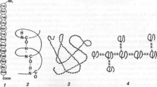 Вторинна структура білків визначається формою ланцюгів амінокислот. Ланцюги у молекулі глобулярних білків, до яких належать і білки злакових, розміщені у вигляді спіралі, витки якої з'єднані водневими зв'язками. Саме наявність цих зв'язків і обумовлює закрученість поліпептидного ланцюга у спіраль.
