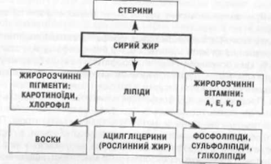 Ліпіди і розчинні в них супутні речовини, що екстрагуються із борошна органічними розчинниками, називають сирим жиром, його приблизний склад показаний на рис.