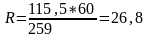 Ритм замеса теста, R, мин, вычисляется по формуле