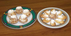 Готовые полуфабрикаты вынимают из печи, охлаждают в формах, а затем вынимают из форм и украшают.