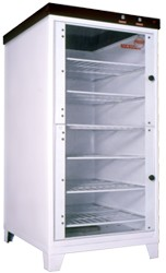 Применяется в пекарнях малой мощности совместно с печами ХПЭ и другими. Шкаф выпускается в двух вариантах: со стеклянными или металлическими дверками. Шкаф оснащен простой системой пароувлажнения и ступенчатым регулированием температуры.