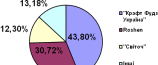 Наприклад, за 8 місяців 2007 року, по даним асоціації «Укркондитер», в Україні випущено 20,5 тис. т шоколаду. З них ЗАО «Крафт Фудз Україна» виготовило 8984 т шоколадних плиток, що складає близько 43,8% , Київська фабрика К. Маркса за цей же період виготовила 6297 т шоколадної плитки, що склало близько 30,72% від загального об`єму виробництва (див. Рис1.2)