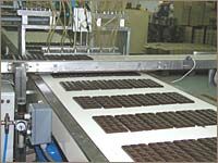 Виколочування відлитих шоколадних плиток з форм на транспортер;