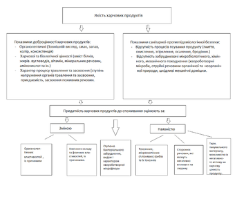 Експертиза харчових продуктів → ознайомлення з транспортною документацією, сертифікатом → загальний огляд продуктів, партії на місці → вибір середніх зразків для лабораторних досліджень → проведення комплексних досліджень → узагальнення результатів дослідження.