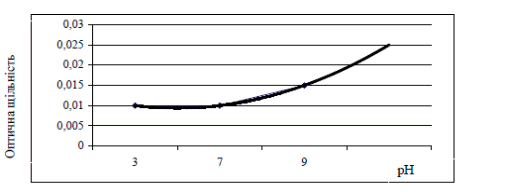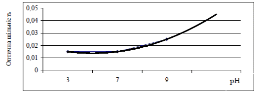 Рисунок 1 – Залежність інтенсивності забарвлення розчинів барвника від рН води