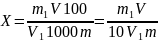 V - вместимость мерной колбы, см3;