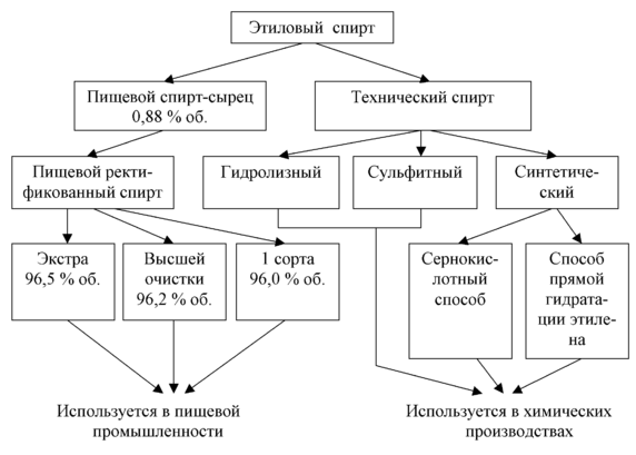 Рис. 1. Виды и способы получения этилового спирта.