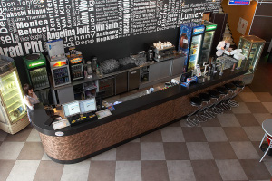 При обслуговуванні відвідувачів важливе значення має правильна організація робочого місця бармена. Висока барна стійка, за якою працює бармен, складається з двох частин: верхньої (менш широкої) — для подачі напоїв сидячим за стійкою відвідувачам і нижньої (ширшої) — для приготування напоїв. Нижня стійка служить одночасно робочим місцем бармена, яке повинне бути добре освітлене. Тут розміщуються електроміксер, електрокавоварка, електротостер, касова машина, терези. В барну стійку повинна бути вмонтовано мийка з підводами гарячої і холодної води.