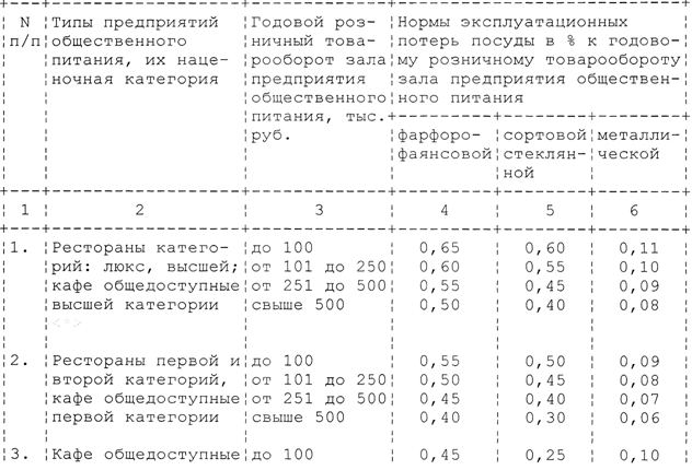 Таким образом, предприятия общественного питания в своей работе при учете посуды и столовых приборов может руководствоваться среднеотраслевыми нормами эксплуатационных потерь посуды и столовых приборов.