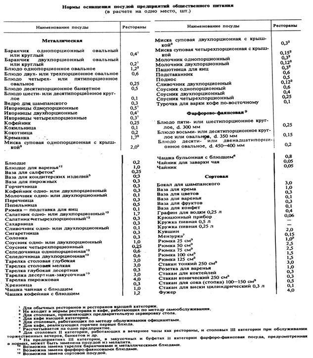1.3 Нормы оснащения предприятий общественного питания посудой