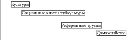К факторам внешнего влияния на поведение потребителей относятся: культура, ценности, демография, социальный статус, референтные группы, домохозяйства. Эти факторы представляют собой, по сути, разнохарактерное влияние групп различного масштаба на потребителя. Схема взаимосвязи размера и типа влияния групп на индивидуума показана на рис.1.