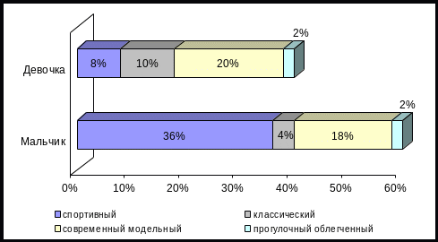 Выбор наиболее оптимального дизайна обуви для ребенка в первую очередь зависит от того, мальчику или девочке подбирается обувь. Наглядное изображение ответов, касающихся этого вопроса, представлено на рис. 2.3.