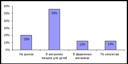 Ответы на вопрос о том, где респонденты предпочитают приобретать обувь для своих детей, представим графически на рис. 2.1.