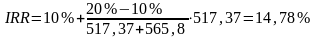 Визначимо внутрішню норму дохідності за формулою.