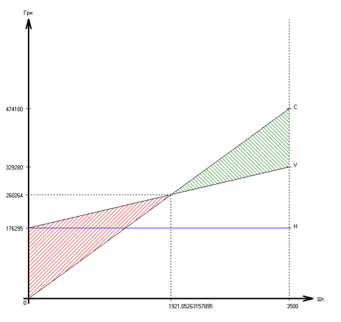 Для побудови графіка беззбитковості необхідно в повній собівартості конструкції виділити змінні (V) і постійні витрати (Н).