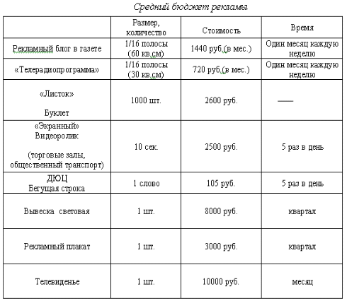 Руководством ресторана будет использоваться информативная реклама, которая предназначена для ознакомления потенциального потребителя с услугами, оказываемыми рестораном. Далее по ходу развития ресторана будет использоваться напоминающая реклама.