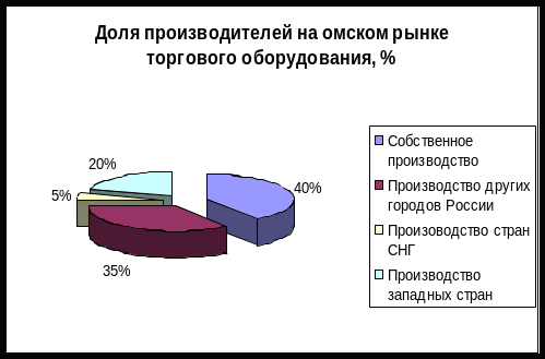Еще одной характерной чертой рынка оборудования стало стремление ряда сибирских компаний к организации собственного производства, что позволило вытеснить с рынка по отдельным позициям московских поставщиков торгового оборудования. И здесь главным стало улучшение «цена-качество», во многом обусловленное исключением расходов на транспортировку. Не следует также забывать о том, что в Сибири находится большое количество заводов, выпускающих необходимое составляющие для производства торгового оборудования, например, алюминиевый профиль.