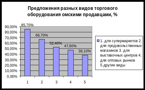 Предложение разных видов торгового оборудования омскими продавцами, %