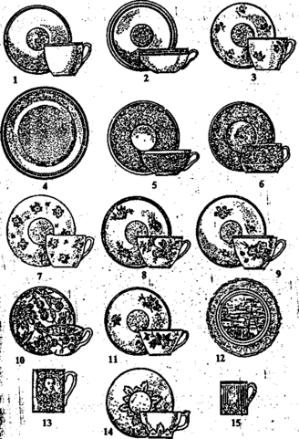 По назначению ассортимент бытовых фарфоровых изделий делят на столовую, чайную, бытовую посуду и прочую.