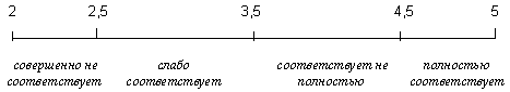 На основании полученного среднего значения могут быть сделаны выводы о степени соответствия реального имиджа предприятия позитивному в соответствии со шкалой, изображенной на рис. 1.4: